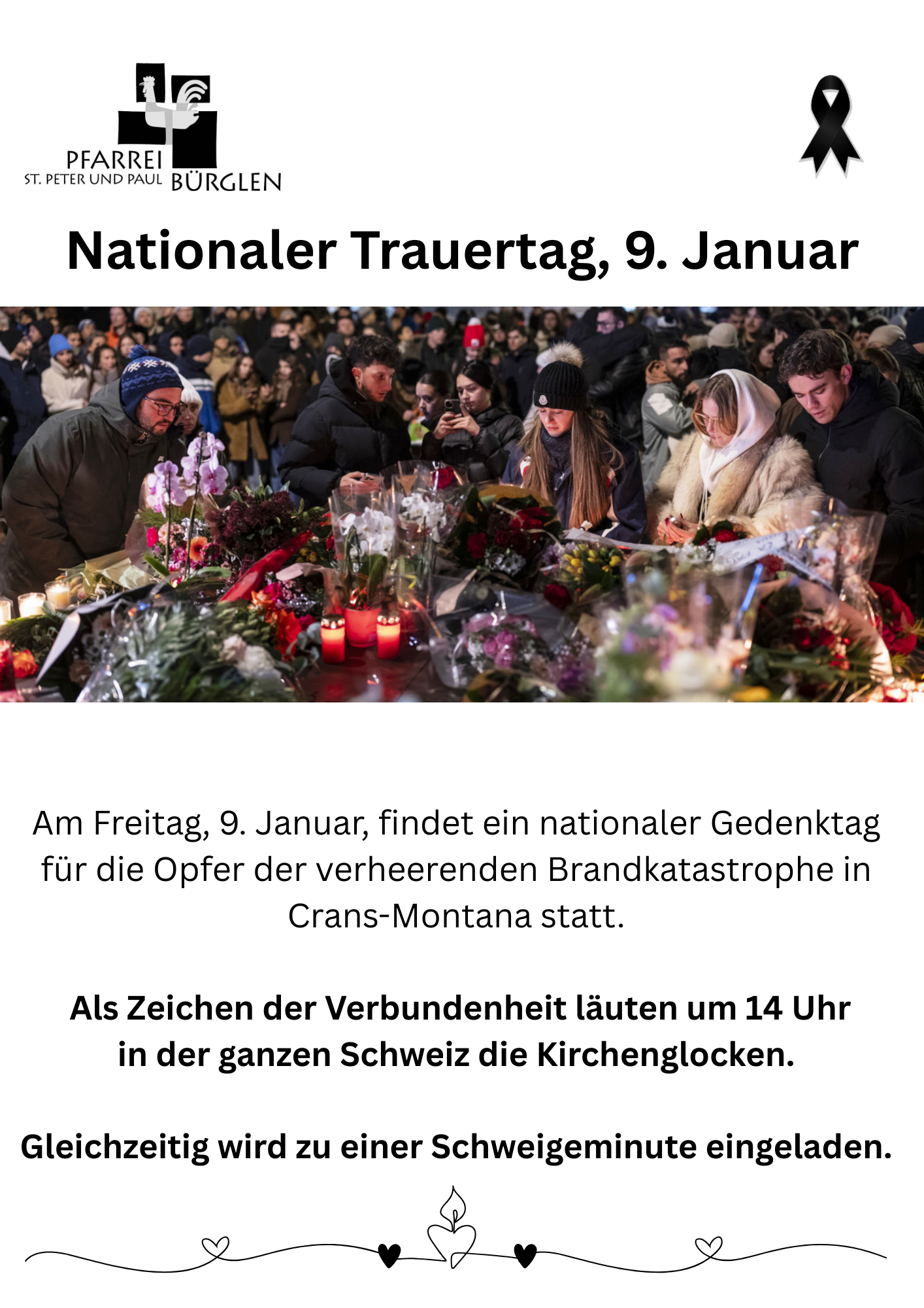 Für die Teilnehmenden der Car-Wallfahrt der Einstieg um 9.50 Uhr bei der Post Bürglen vorgesehen. Kosten CHF 35, Barzahlung im Car.